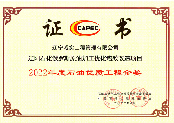2022年度石油優(yōu)質工程金獎